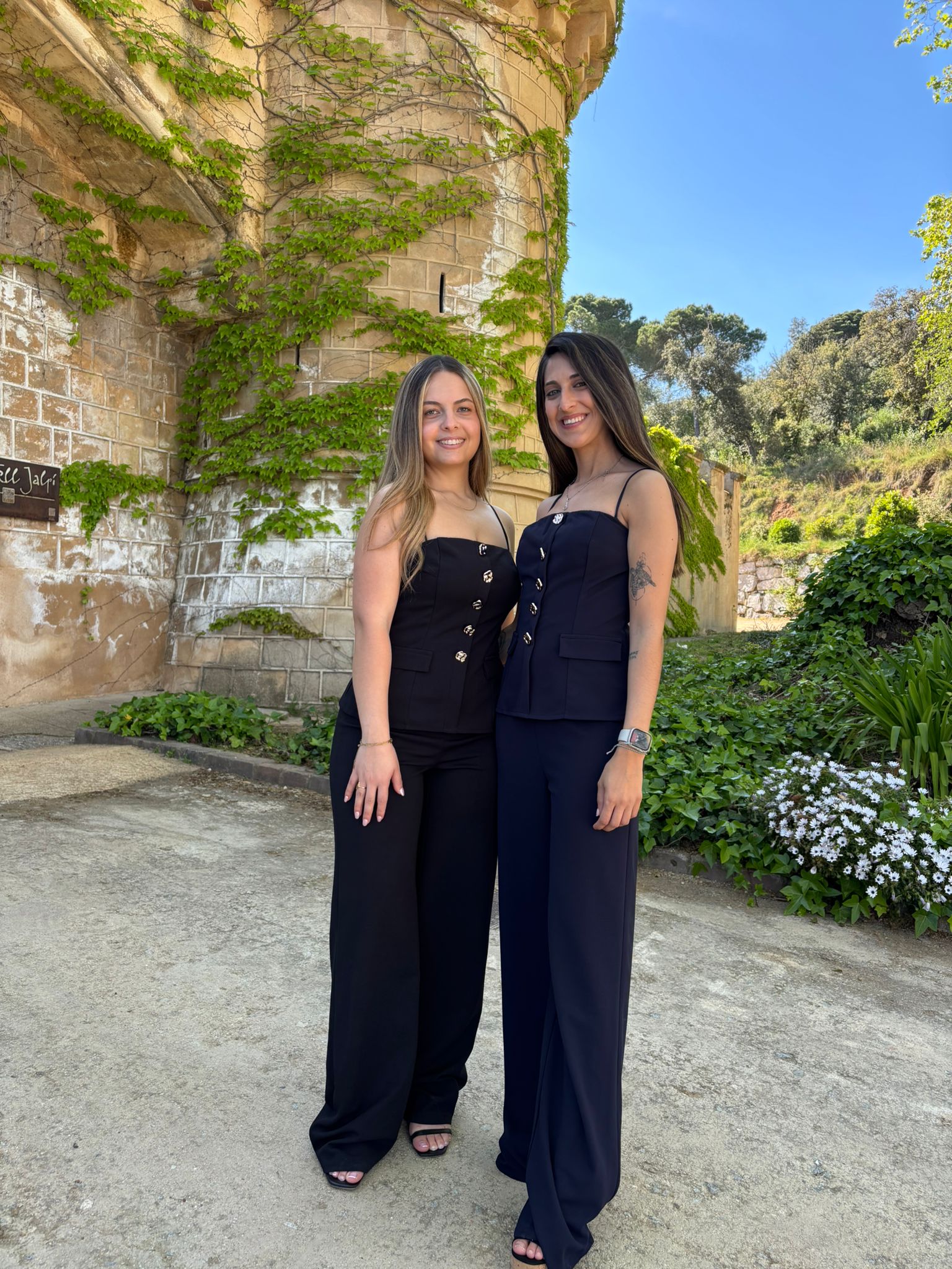 Mono de botones falsos dorados , lleva cremallera invisible en la parte trasera y una abertura pequeña.