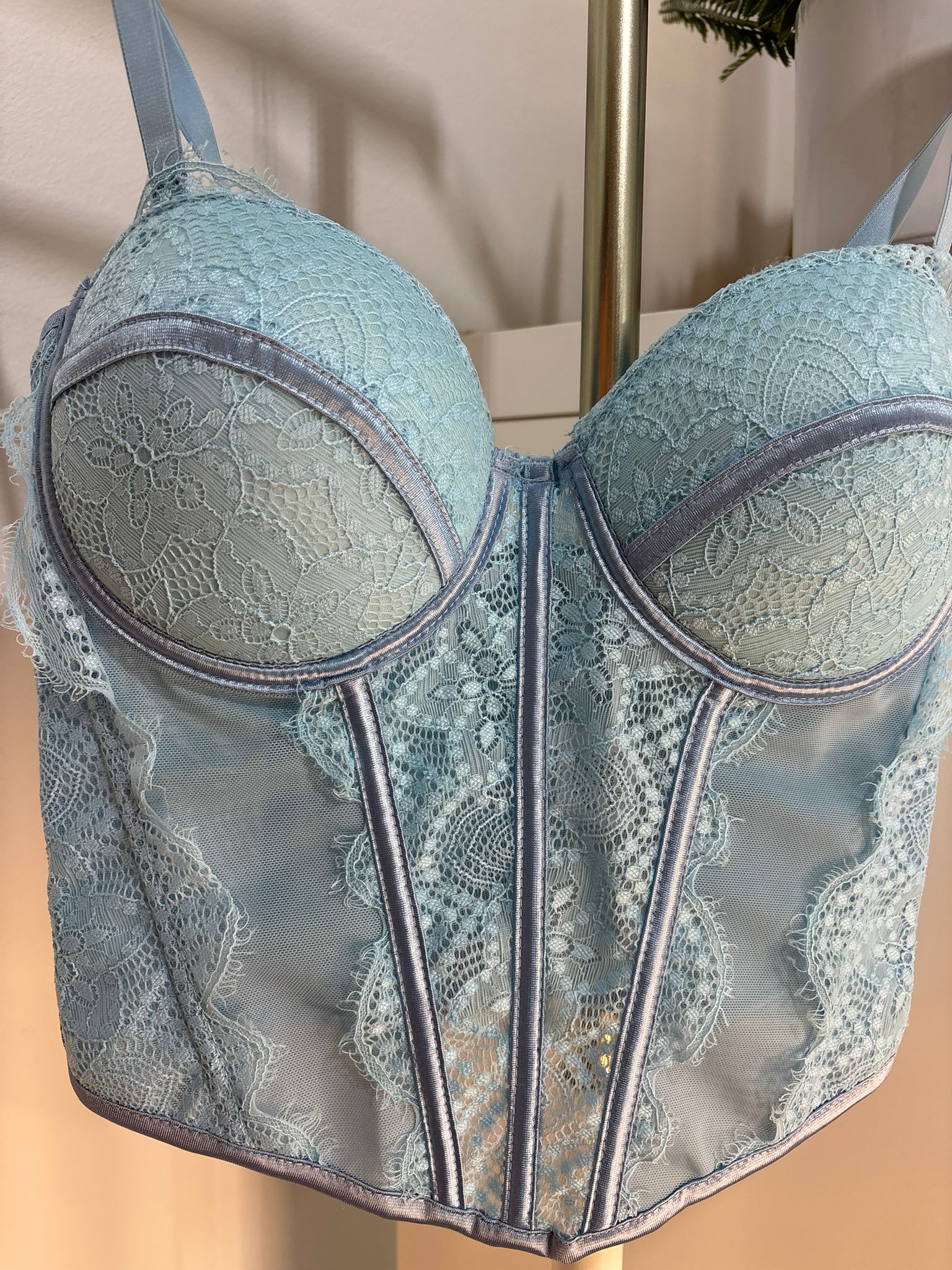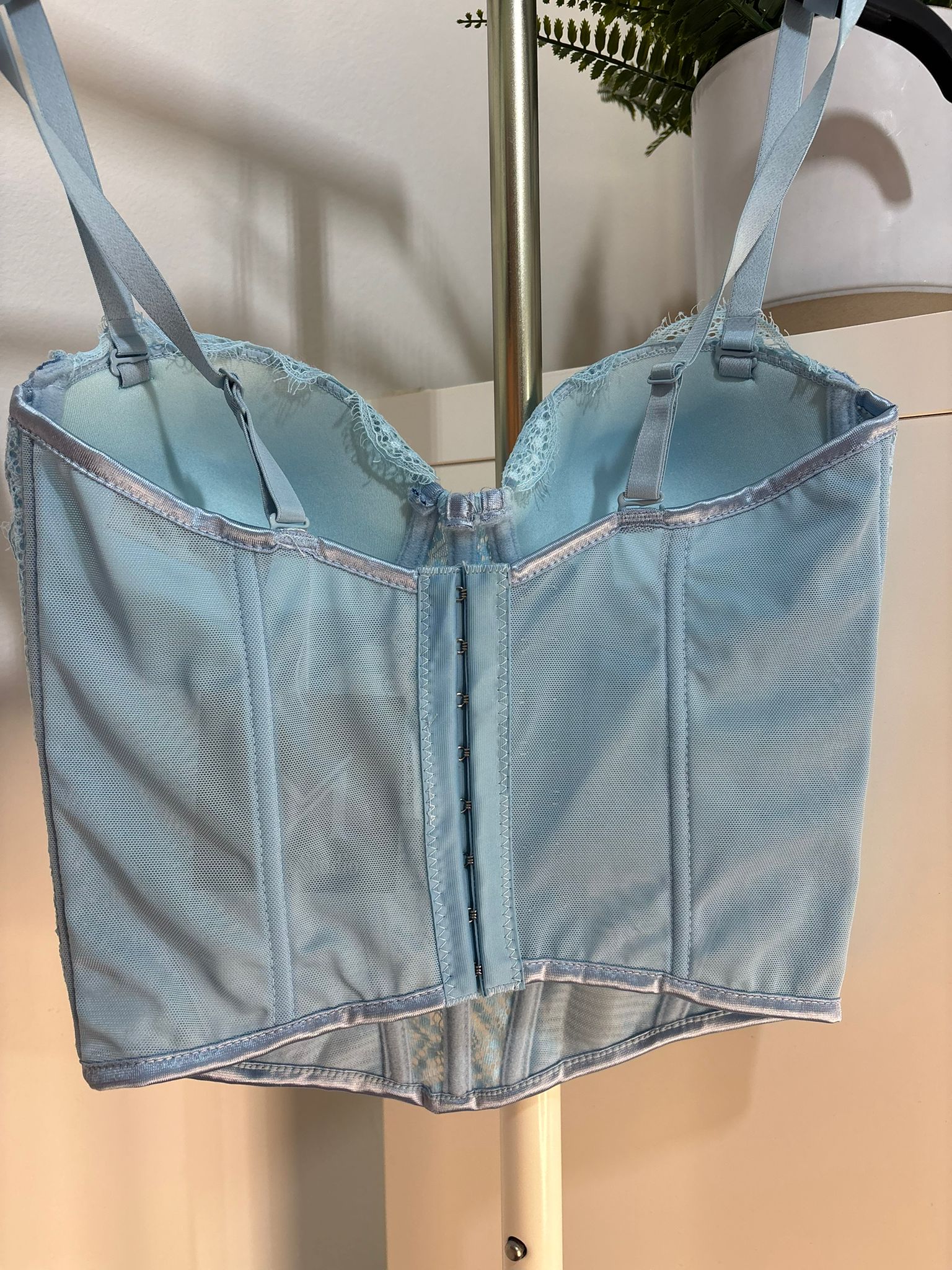 Top corset en color celeste adornado con encaje